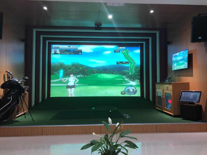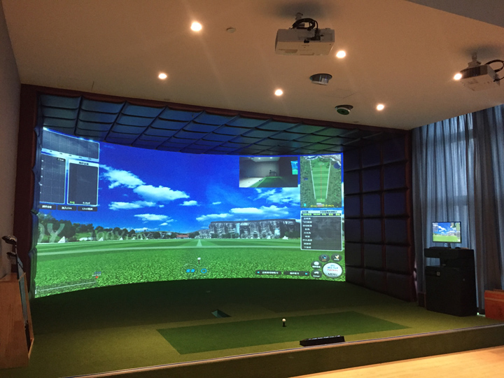 环幕模拟高尔夫是由一块无缝拼接的大屏幕展现出来的。通过设计,制作成有弧度的屏幕,所以也叫“曲屏模拟高尔夫”。环屏模拟高尔夫具有环形幕,无转折、圆弧过度平整、视角感受真实、视野开阔等优点。环屏模拟高尔夫的场地要求如下:场地宽:最佳宽度7.5米,宽度在5.5米----9米均能满足使用要求。场地长:最佳长度9米,长度在6.5米以上均能满足使用要求。场地高:最佳高度3.1米,高度在2.6米----3.2米均能满足使用要求。