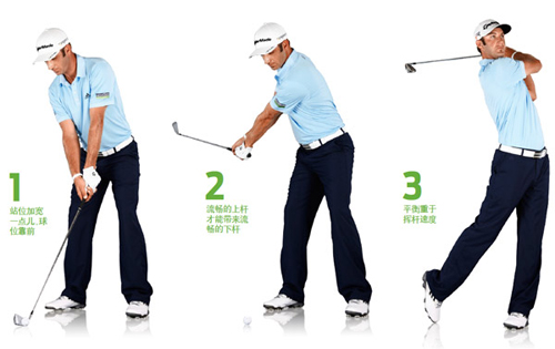 使用长铁杆时,你的挥杆速度越快,就会打出越严重的右曲球。问题当我和业余球手一起打球时,我发现他们的挥杆太猛,尤其是在使用长铁杆时。此外,由于试图帮助球飞起,他们在触球过程中看起来会使重心落后、停在右脚上。这些失误(以及失去平衡的问题)是长铁杆击球的大忌。因此,如果你在长铁杆击球时经常出现这样的失误,现在是时候做出调整了。解决方法要实现长铁杆稳固触球,我的主要诀窍是避免挥杆匆忙。我会争取保持耐心,在挥杆过程中保持平衡,专注于实现稳固触球。要模仿我的技术,可以按照下面的步骤来做。