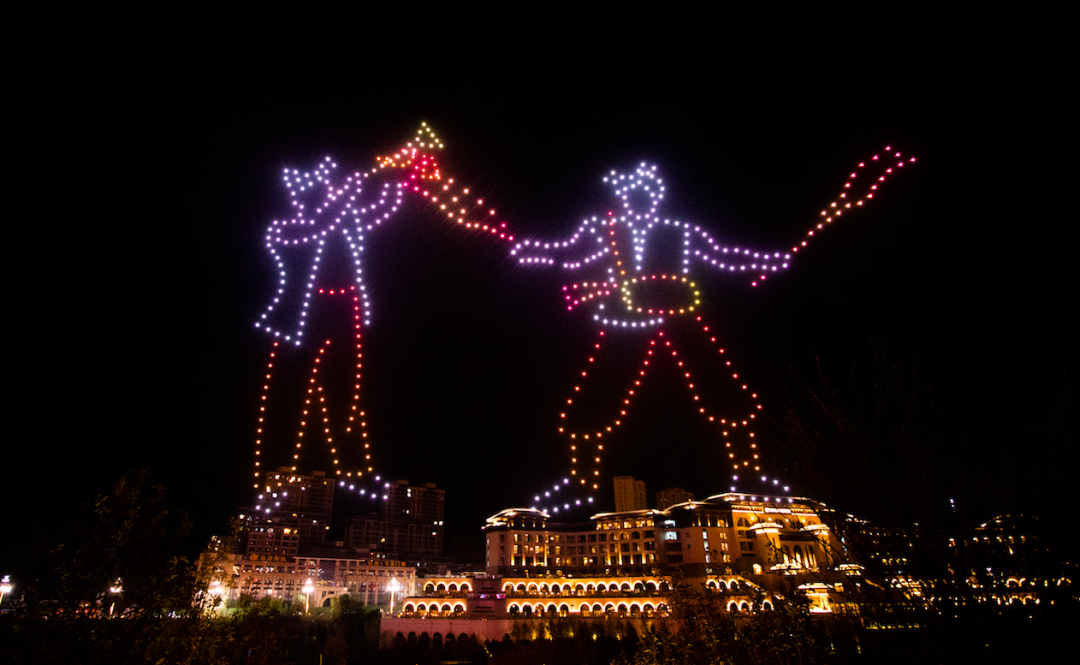 以天为幕,以街区为景。超500架无人机倾巢而出,将科技之美与艺术之美深度融合,带给游客一场美轮美奂的视觉享受!