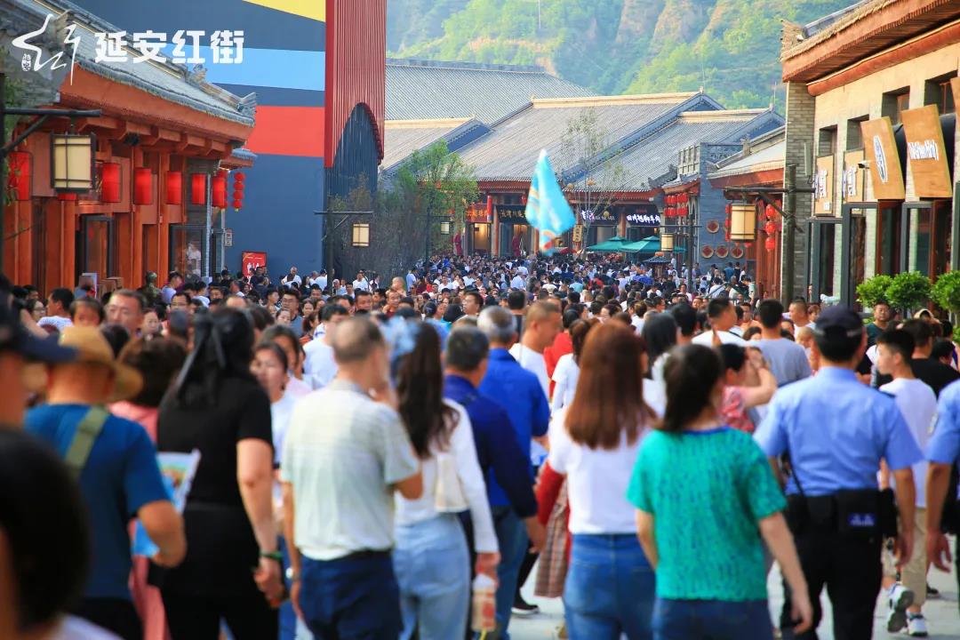 1.5公里的延安红街包括了大型沉浸式体验馆、红色文化主题场馆、非遗民俗体验店、陕北各式特色美食等主要内容,开街首日,现场更是人气爆棚,客流量冲破26万!先来看一组实况人从众𠈌...